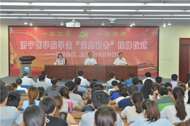 为庆祝建党95周年,深入开展“两学一做”学习教育活动,充分发挥学生党员的先锋模范作用,学校“一名党员 一面旗帜”学生党员示范宿舍挂牌仪式于6月14日下午在太白湖校区、日照校区同步视频举行。校党委书记马安宁,党委副书记、纪委书记温杭东出席仪式,党委委员、副院长赵敏主持仪式。