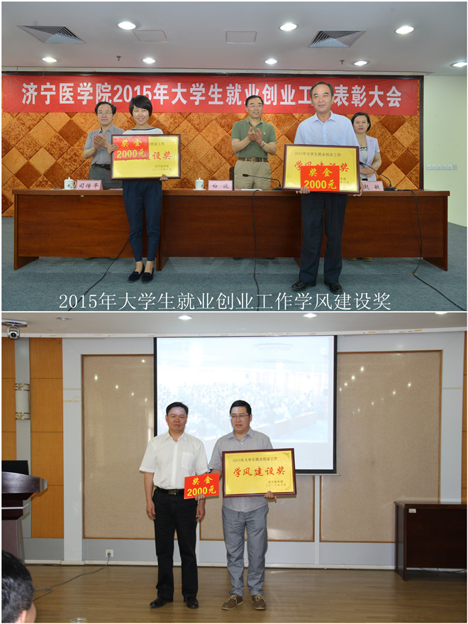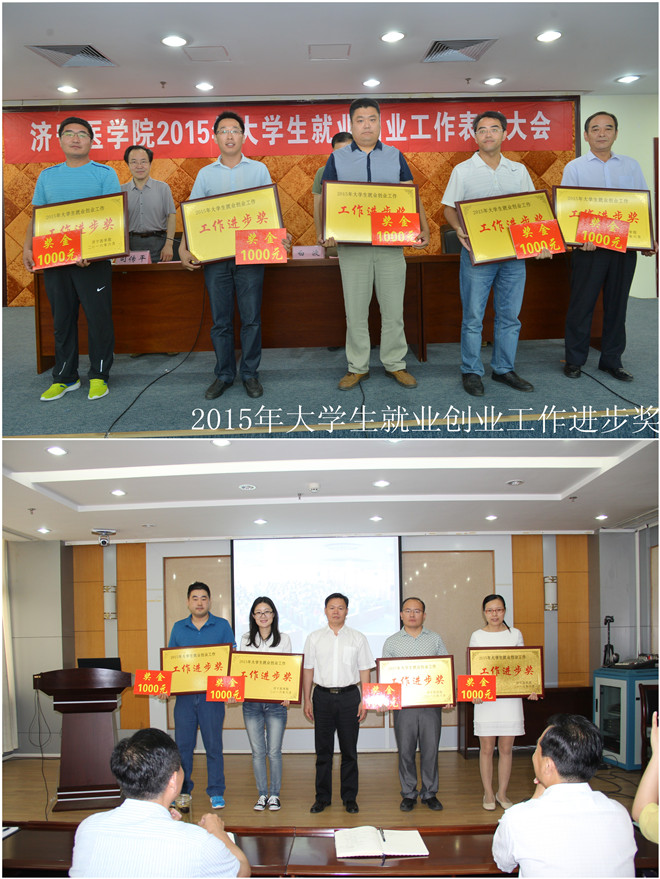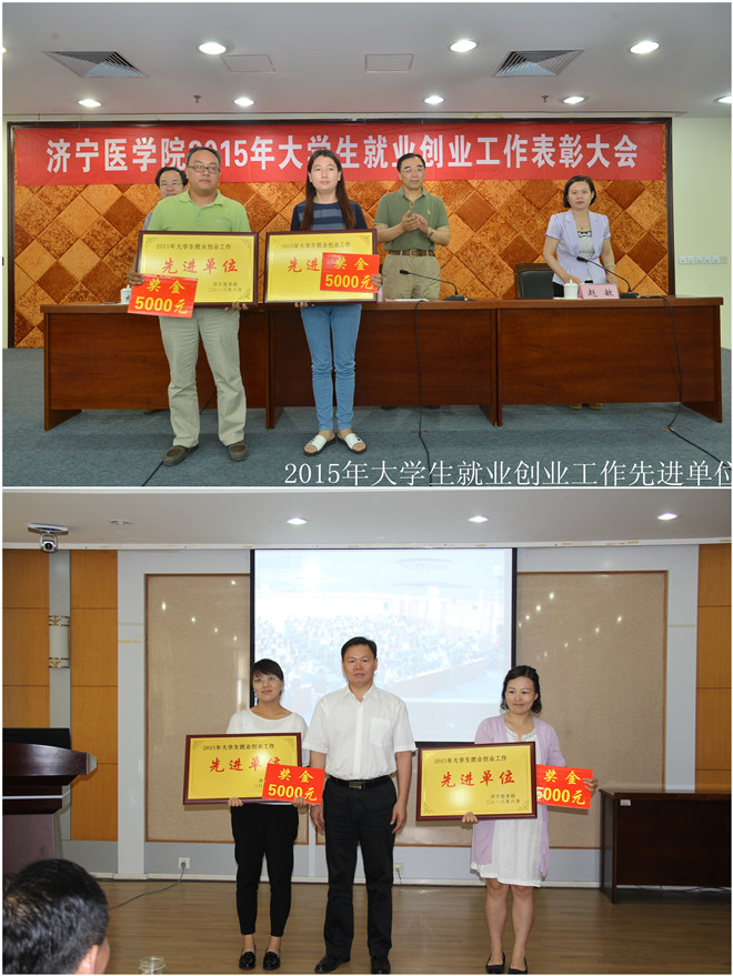 司传平宣布了2015年大学生就业创业工作考核获奖集体和个人名单。学校领导为先进集体和个人进行了颁奖。4位先进集体和个人代表、作了大会交流发言。