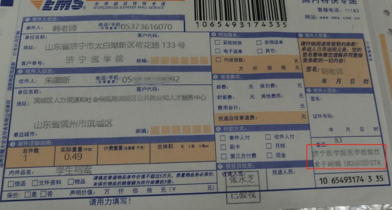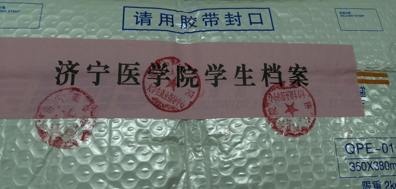 图3档案泡沫包装袋邮寄单右下角备注个人详细信息