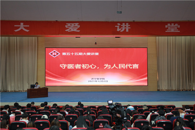12月2日,我校举办第五十五期“大爱讲堂”。我校杰出校友,六届全国人大代表,国际人道主义服务荣誉奖、世界和平文化奖、全国十大杰出职工、全国劳动模范、全国三八红旗手等120多项荣誉称号获得者,享受国务院特殊津贴专家姜健,应邀作主题为“守医者初心,为人民代言”的讲座。
