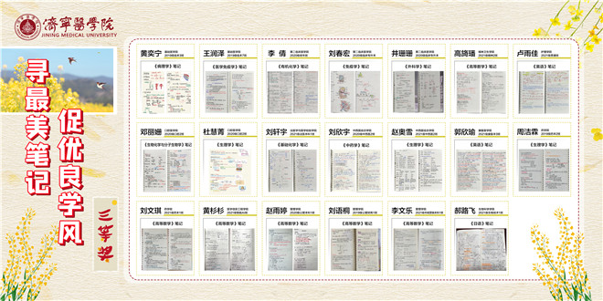 青春不留白,笔记展学风。本次获奖笔记内容充实、简洁工整,既有思路明确、重点突出的知识点梳理,又有环环相扣的思维导图,多形式地展现了不同学科专业的独特风采,充分展示了济医学子踏实认真的学习态度、勤学善思的学习品质,为广大同学树立了学习的优秀榜样。