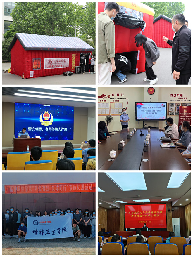 普及专业知识,强化安全防范意识。各二级学院组织召开安全教育主题班会,辅导员、班主任积极行动,搜集整理安全警示案例,结合大学生具体实际,开展安全教育。药学院和法医学与医学检验学院分别举办了学生安全承诺签名活动,全体学生积极签署安全承诺书;精神卫生学院组织学生们撰写十大诈骗行为,提高安全防范意识、筑牢安全思想防线。