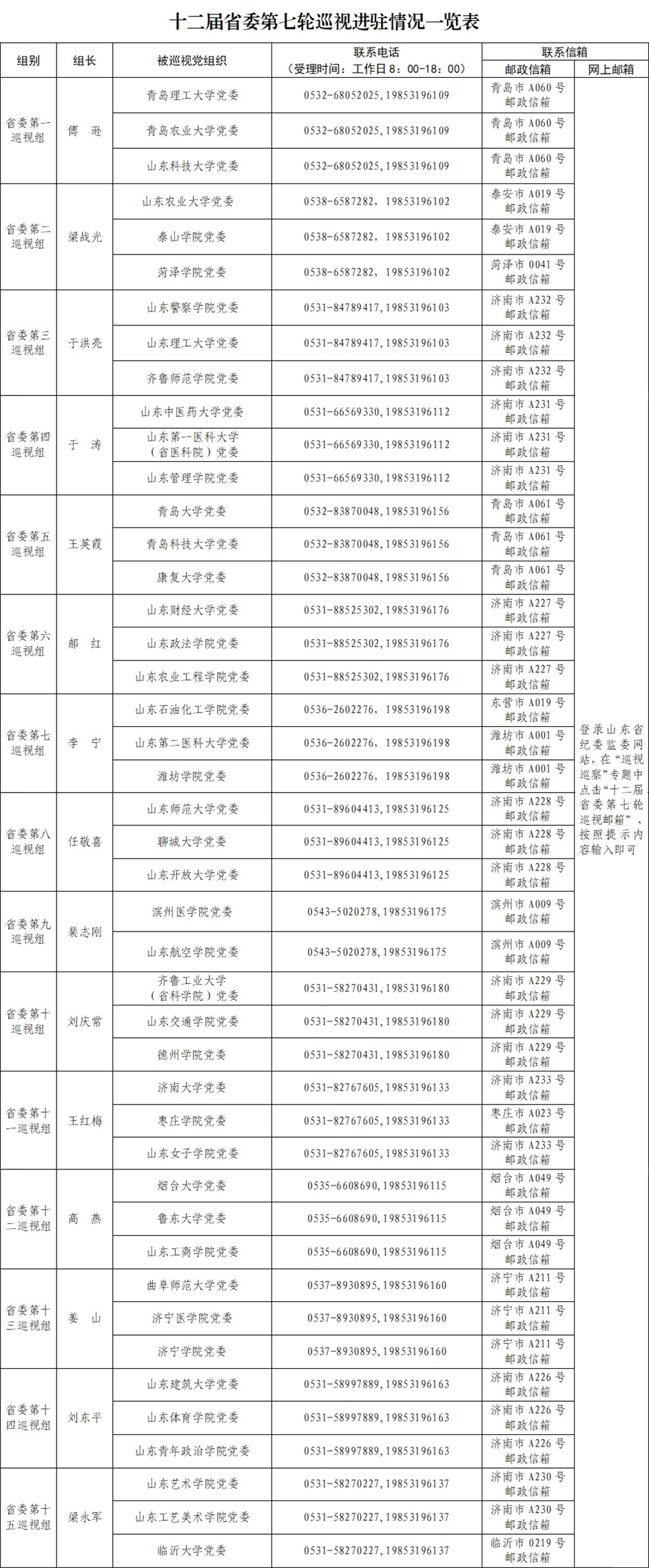 根据省委统一部署,截至322日,十二届省委第七轮巡视完成进驻工作。15个省委巡视组将对44所省属本科高校党委开展常规巡视。