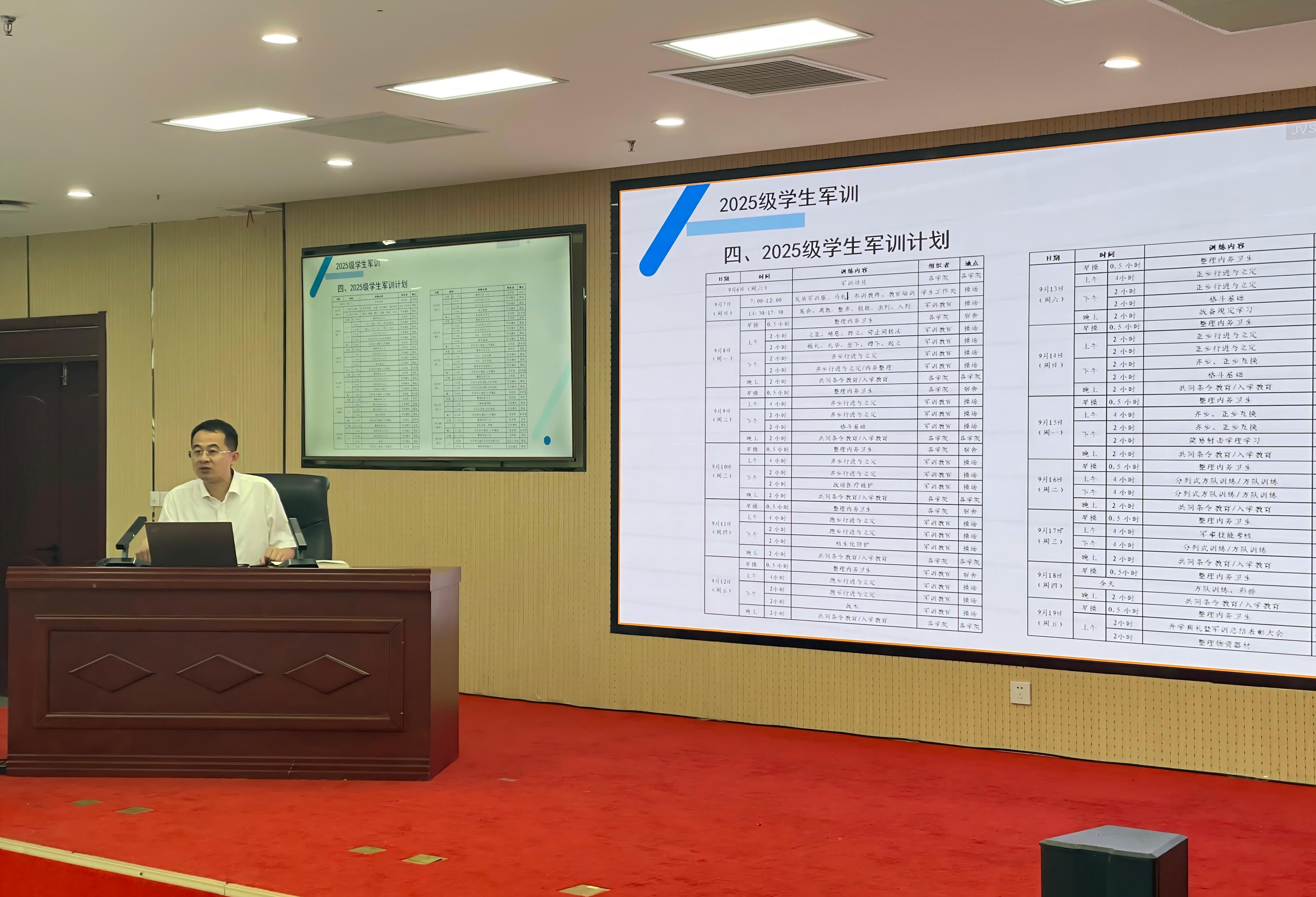 9月7日,学校召开2025级学生军训参训教师、教官培训会议。会议安排部署2025级学生军训和入学教育工作,从军训人员编成、时间安排、军事技能训练、入学教育、纪律规定、安全管理等方面展开。