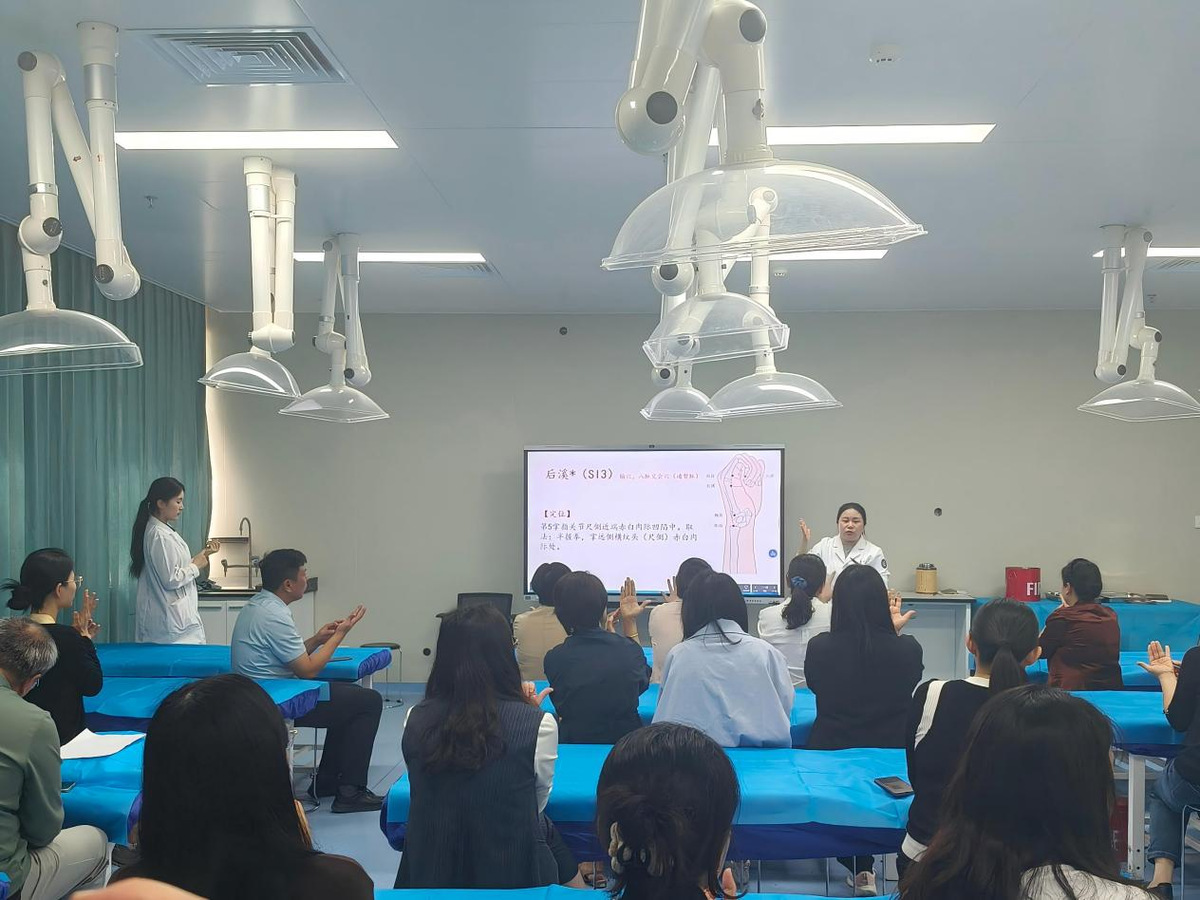为深入落实立德树人根本任务,将中华优秀传统文化融入辅导员身心健康关怀体系,切实提升辅导员的职业幸福感与团队凝聚力,9月25日上午,由学生工作处主办、长林间辅导员领航工作室承办的“承国粹 润身心”辅导员素质拓展培训活动在太白湖校区中医综合实训中心举行。中西医结合学院针灸推拿教研室主任郑灿磊、青年教师颜晓作专题讲解并进行现场指导。