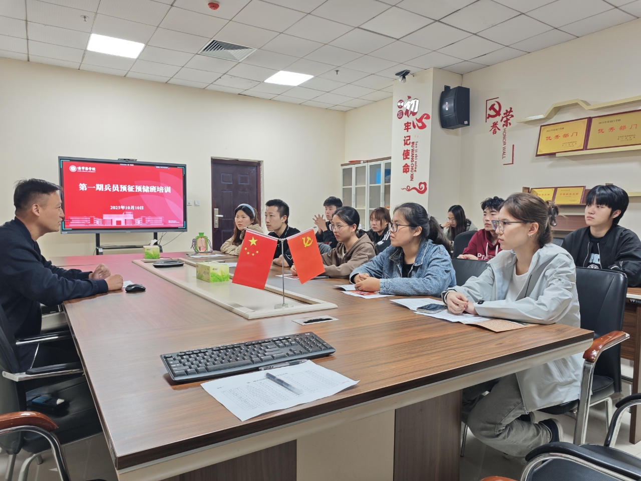 学校武装部国防负责人介绍了开设兵员预征预储班的意义和总体安排,就兵役法规进行专题培训,深入解读了征集条件、报名流程及国家资助、家庭优待、考研升学、部队发展、就业创业等多项优惠政策。