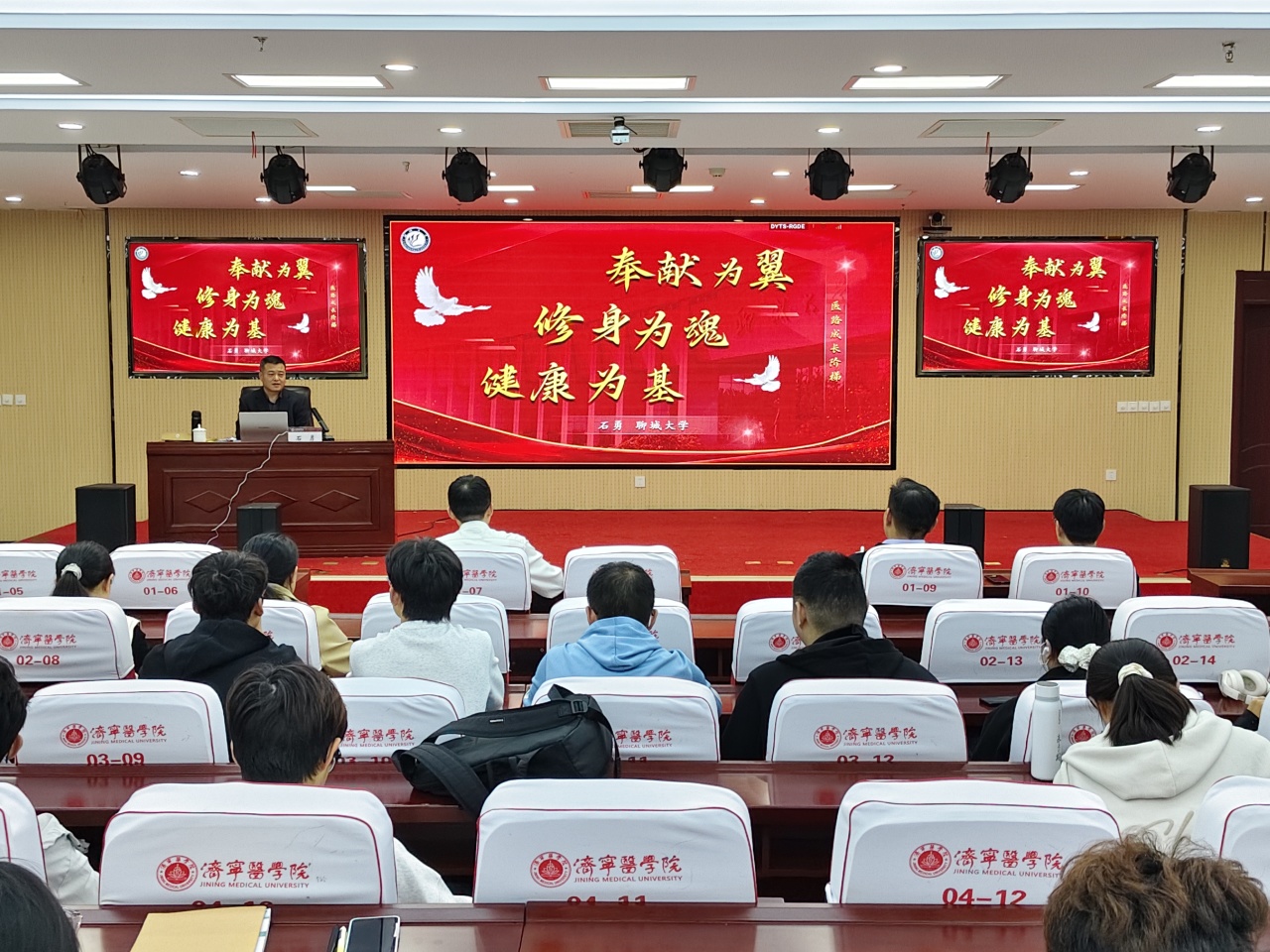 石勇以《健康为基·修身为魂·奉献为翼——医路成长绘就家国答卷》为题,从体魄奠基——个人健康到职业抗压能力培养、立德铸魂——从医德传承到职业价值观塑造、奉献致远——从职业理想到家国情怀的实践三个维度,结合生动的案例、深刻的思考,为同学们明晰职业路径,鼓励同学们将个人职业理想与国家医疗改革需求、基层医疗服务需求相结合,以实际行动践行“健康中国”战略下的青年担当。