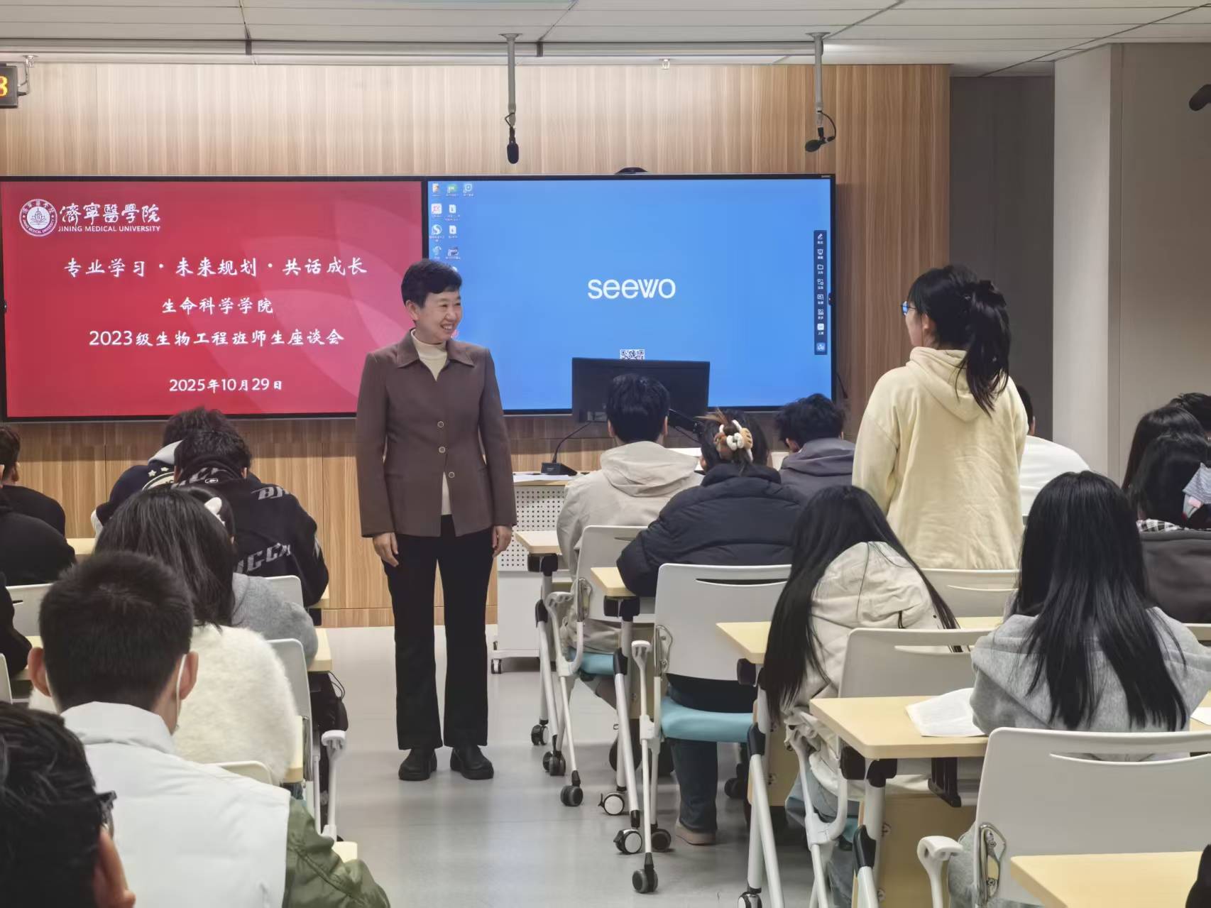 为落实领导干部联系班级制度,深入了解学生的思想、学习和生活状况,助力学生全面成长成才,10月29日下午,学校党委委员、副院长王文姮到生命科学学院2023级生物工程专业本科一班,以“专业学习・未来规划・共话成长”为主题,与班级同学进行座谈交流。