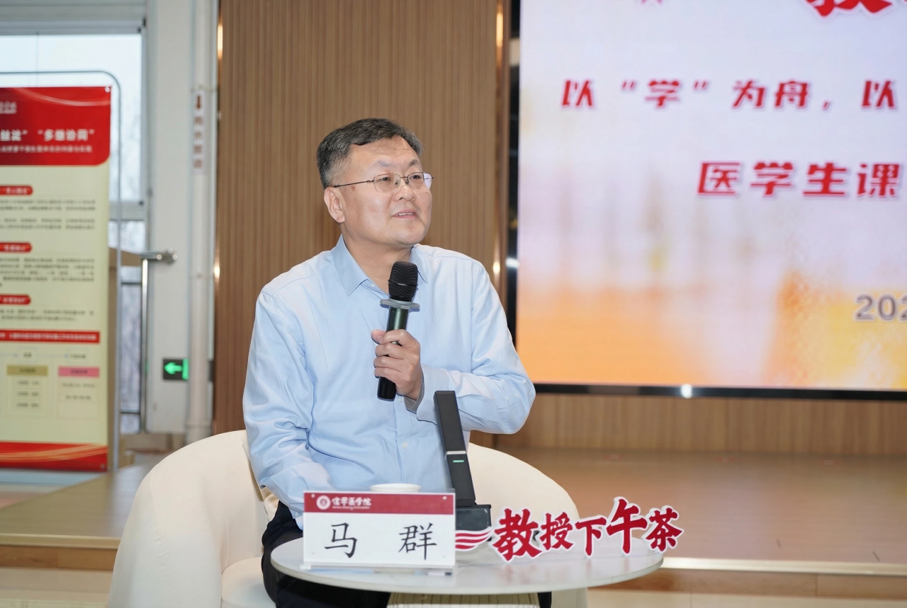 活动伊始,马群教授首先向同学们抛出三个问题:“你为什么选择学医?”“你喜欢在什么时间、以何种方式学习?”“你认为最有效的课堂教学方式是怎样的?”这些问题迅速引发了同学们的思考与共鸣,也为接下来的分享奠定了互动开放的基调。