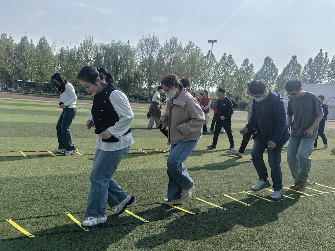 全体辅导员通过动态拉伸、灵敏性练习及足球专项脚步移动等内容完成热身,随后在主持人的统一指令下,通过分组比拼、默契配合,轻松愉快地完成“扔沙包进篮”“一圈到底”“你画我猜”等团队项目,活动集竞技性、协作性、趣味性于一体。大家在精准与力量控制中释放压力,在欢声笑语中舒缓身心,充分展现了我校学工队伍团结向上、积极进取、勇于拼搏的精神风貌。